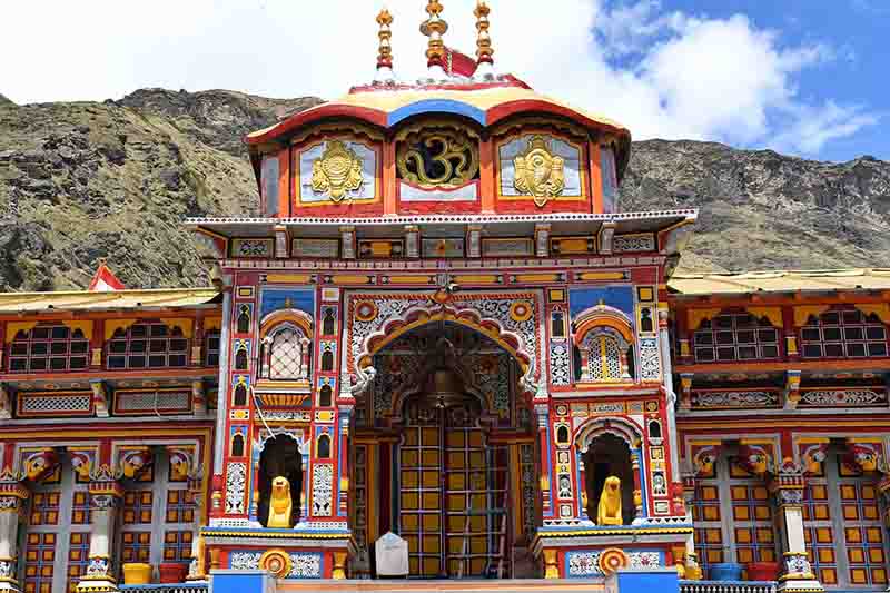 is consideration an Adisiddhapeeth- a place renowned for its mystico-magical power and hence considered conducive to the practice of spiritual-meditational exercises, tantric ritual or penance. There are interesting tales attached to its name. Badri is the Sanskrit word for a common berry, ber, usually offered to Shiva. The faithful believe that a gigantic badri tree is situated here which is not visible to mortals in the age of Kali. Considered one of the Char Dham or four principal places of Hindu worship, Badrinath is perched comfortably at an altitude of 3,122m on the slopes of a U-Shaped valley, protected from avalanches by a rocky projection above. Nilkanth stands by like a sentinel, and below the temple flows the crystals-clear torrent of the Vishnu Ganga. A short distance and a hard climb away from the main shrine are the Vyas and Ganes gufas (cave). The Mahabharata, according to tradition, was composed and dictated there.